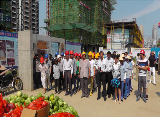 活動(dòng)第一站來到合肥城市公司天下錦城R3地塊項(xiàng)目部。在施工現(xiàn)場,分管領(lǐng)導(dǎo)首先對在高溫下堅(jiān)持工作的一線職工表示親切慰問,叮囑大家在完成工作任務(wù)的同時(shí),更要注意自身的身體健康和生產(chǎn)安全。他要求,各地塊施工單位要進(jìn)一步加強(qiáng)高溫季節(jié)職工勞動(dòng)保護(hù)和防暑降溫工作,要加強(qiáng)對高溫、高濕、高空、露天作業(yè)的場所的監(jiān)督檢查,督促各參建單位嚴(yán)格執(zhí)行高溫作業(yè)的有關(guān)規(guī)定,調(diào)整好作業(yè)時(shí)間,確保高溫期間一線職工的生產(chǎn)生活安全健康。據(jù)悉,活動(dòng)還將陸續(xù)前往安慶、蚌埠、阜陽等城市公司,向當(dāng)?shù)貖^斗在一線的工人送去“關(guān)愛”和“清涼”。