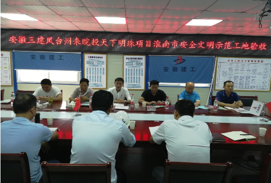 會(huì)議首先由安徽三建項(xiàng)目經(jīng)理對(duì)鳳臺(tái)州來(lái)皖投天下明珠項(xiàng)目安全文明施工開展情況進(jìn)行了匯報(bào)。隨后,專家組成員對(duì)大型設(shè)備設(shè)施、模板腳手架支撐、施工用電等方面分組進(jìn)行了嚴(yán)格檢查,實(shí)地核查了整個(gè)項(xiàng)目現(xiàn)場(chǎng)施工情況,并仔細(xì)查閱了項(xiàng)目部安全管理資料。驗(yàn)收評(píng)審會(huì)上,專家組對(duì)天下明珠項(xiàng)目部在安全文明生產(chǎn)、揚(yáng)塵治理工作方面所做出的努力給予了充分肯定,對(duì)項(xiàng)目下一步創(chuàng)建安徽省建筑施工安全標(biāo)準(zhǔn)化示范工地提出了建設(shè)性意見。