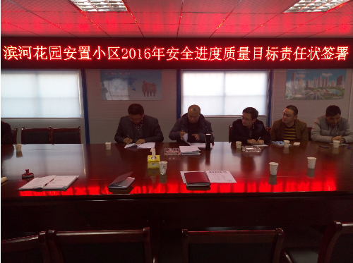 為明確安全責(zé)任,防范各類安全事故的發(fā)生,2016年3月11日,阜陽皖投置業(yè)公司組織濱河花園一期二期總包、監(jiān)理單位簽署《2016年度安全、進(jìn)度、質(zhì)量等目標(biāo)責(zé)任狀》。
