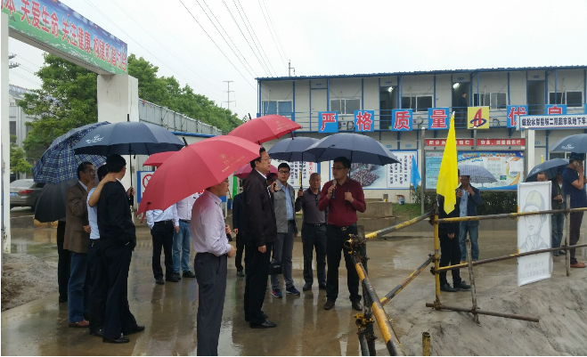 2016年6月3日下午,滁州市人民政府副市長楊東坡在全椒縣常務副縣長楊光、全椒經(jīng)濟開發(fā)區(qū)管委會副主任倪學標及滁州市有關部門負責人的陪同下,深入皖投水岸星城綜超項目施工現(xiàn)場組織開展調(diào)研。