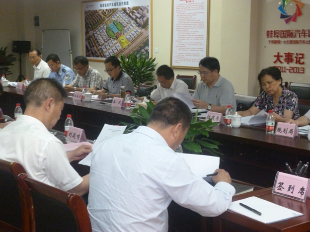 2014年5月28日下午,蚌埠市副市長、汽車城項目建設工作領導小組組長秦武,于項目營銷中心一樓會議室主持召開專題調度會。項目建設工作領導小組副組長許鵬林,市環(huán)保局、市住建委、市交通局、市規(guī)劃局、市交警支隊、市國稅局、高新區(qū)管委會、供電公司、蚌埠皖投融富公、安徽外灘物業(yè)公司相關負責人參加會議。