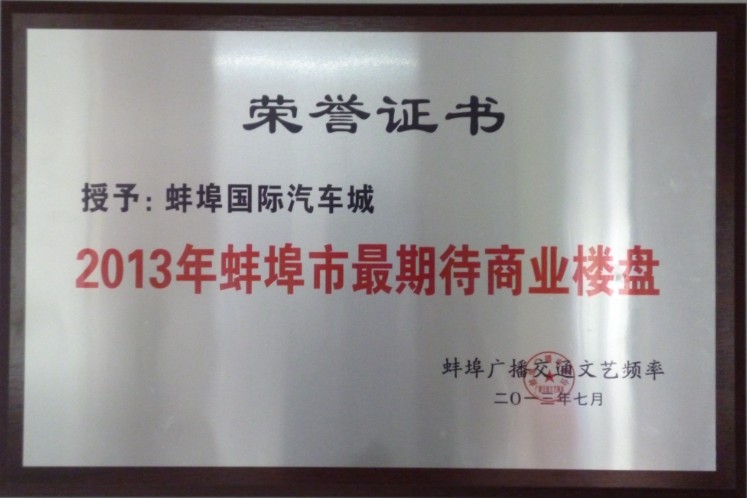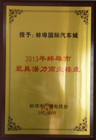蚌埠國際汽車城榮獲蚌埠市最具潛力商業(yè)樓盤殊榮