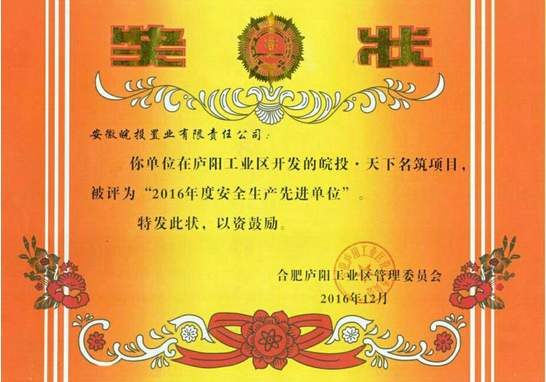 2016年12月,合肥天下名筑項(xiàng)目在合肥市廬陽(yáng)區(qū)管委會(huì)開(kāi)展的安全生產(chǎn)先進(jìn)單位的評(píng)比中榮獲“2016年度安全生產(chǎn)先進(jìn)單位”,廬陽(yáng)區(qū)管委會(huì)對(duì)合肥城市公司在認(rèn)真貫徹落實(shí)各級(jí)關(guān)于安全生產(chǎn)工作的一系列安排和部署上予以充分肯定。
