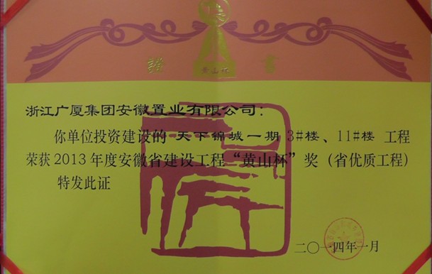 天下錦城一期3#樓、11#樓榮獲安徽省“黃山杯”