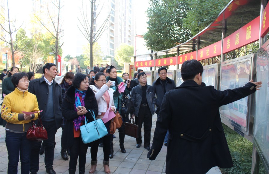 為進一步加強基層思想政治工作,切實提升城區(qū)街道鄉(xiāng)鎮(zhèn)黨委宣傳干部綜合素質(zhì)及開展思想政治工作的能力。11月29日上午,由省委宣傳部組織全省、市、區(qū)、街道,各街道鄉(xiāng)鎮(zhèn)黨委宣傳委員或分管負責人,各開發(fā)區(qū)工委辦分管負責人等約100余人蒞臨外灘物業(yè)月桂苑沁心湖社區(qū)參觀。