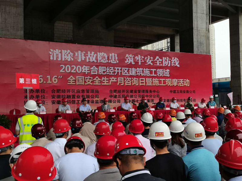6月16日上午,經(jīng)開區(qū)建筑施工領(lǐng)域安全生產(chǎn)月咨詢?nèi)蒸呤┕び^摩活動在產(chǎn)融中心項目圓滿舉行,市城鄉(xiāng)建設(shè)局、經(jīng)開區(qū)管委會、安徽皖投置業(yè)有限責(zé)任公司、經(jīng)開區(qū)應(yīng)急管理相關(guān)領(lǐng)導(dǎo)、經(jīng)開區(qū)各在建項目建設(shè)單位負(fù)責(zé)人、監(jiān)理單位總監(jiān)理工程師、施工單位項目經(jīng)理及技術(shù)負(fù)責(zé)人、安全員等300余人參加活動。