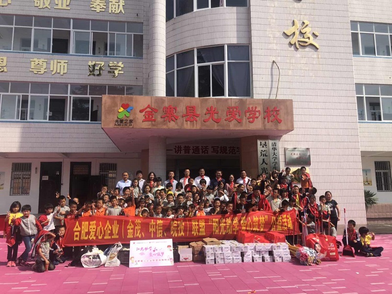 喜迎七十華誕,感恩偉大祖國,為積極踐行國企社會(huì)責(zé)任,公司聯(lián)合中國金茂合肥公司、中信銀行合肥望江西路支行共同成立“陽光助學(xué) 愛心筑夢(mèng)”——合肥愛心企業(yè)聯(lián)盟,于9月25日、26日開展愛心助學(xué)活動(dòng),先后走進(jìn)金寨縣燕子河初級(jí)中學(xué)、水竹坪實(shí)驗(yàn)學(xué)校水坪教學(xué)點(diǎn)、金寨縣光愛學(xué)校?;顒?dòng)前,公司積極與學(xué)校溝通,按需捐助,同時(shí)發(fā)動(dòng)公司員工積極捐物,奉獻(xiàn)點(diǎn)點(diǎn)愛心。